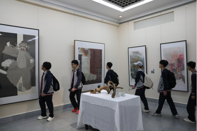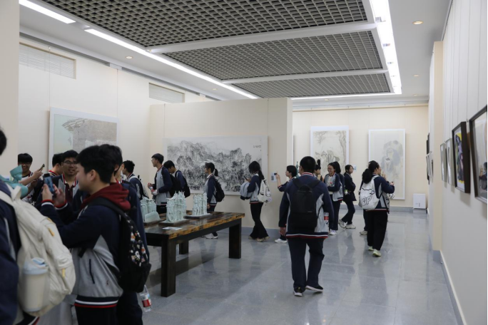 4月1日,咸宁市美术馆·董继宁美术馆内,“墨契同行”——铸牢中华民族共同体意识五省高校多民族教师美术作品邀请展迎来咸宁高中1200余名师生参观。展览现场气氛热烈,师生们在笔墨丹青间感受中华文化的博大精深与民族精神的交融共鸣。